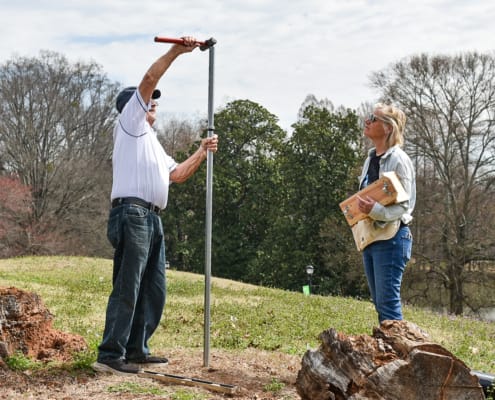Unlike the previous boxes, which were set in concrete, the new installations use a more flexible method. A two-foot piece of rebar anchors each pole into the ground, allowing the box to be adjusted if needed. If groundskeeping needs change or wildlife activity suggests a better placement, the boxes can be moved without disrupting nesting success.