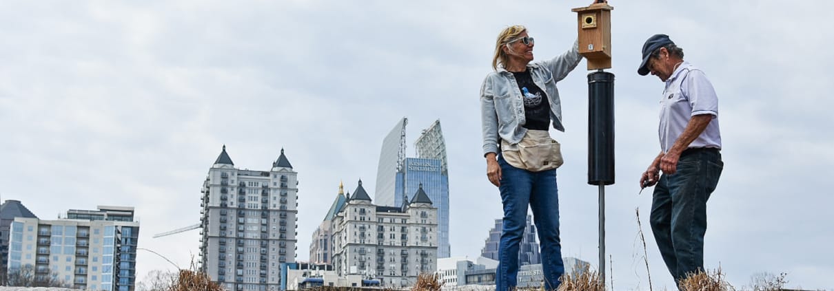 Each spring, bluebirds return to Piedmont Park in search of safe places to nest. This year, that search begins with a small but meaningful effort led by two dedicated volunteers.